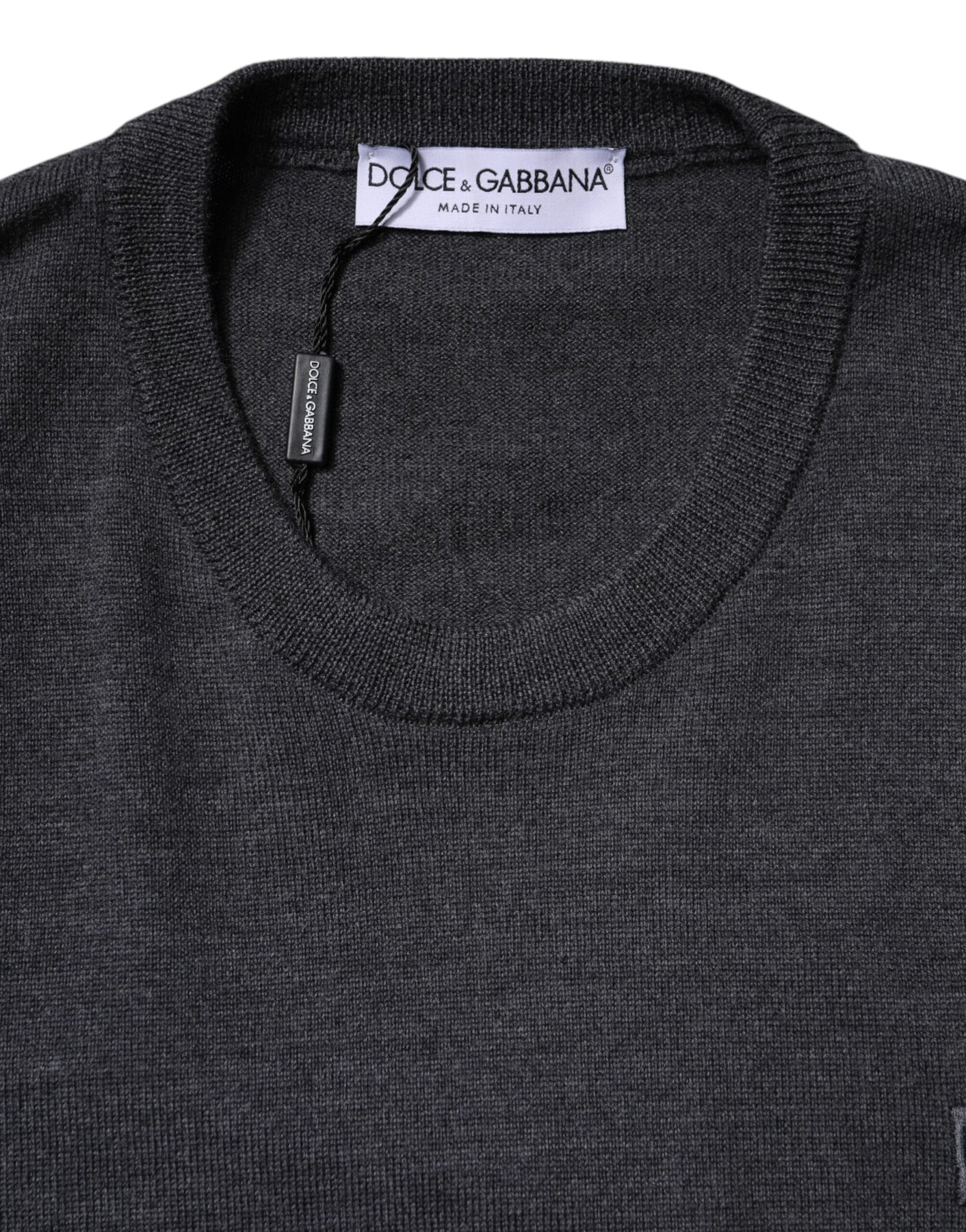 Pull en laine grise avec logo Dolce & Gabbana pour homme