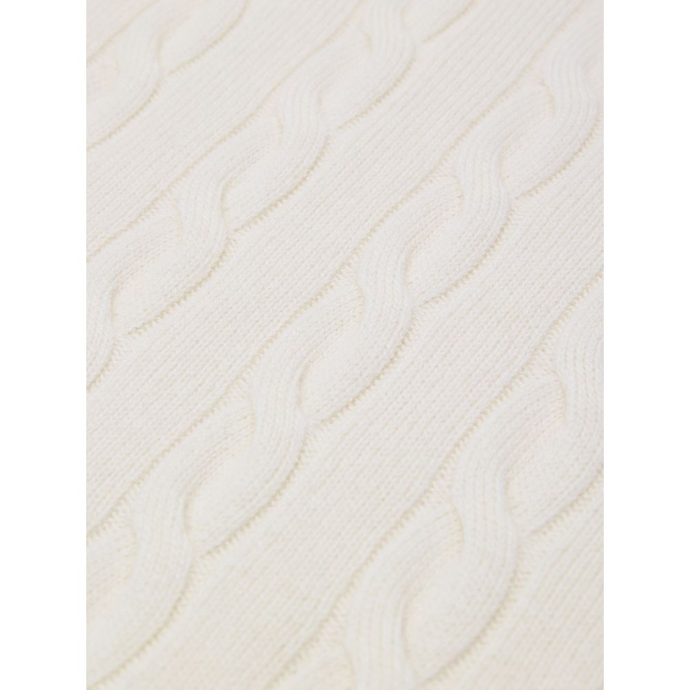 Gran Sasso White Cashmere V-Neck Sweater. Buttoned V-neck, classic shirt collar, allover cable knit, soft feel.