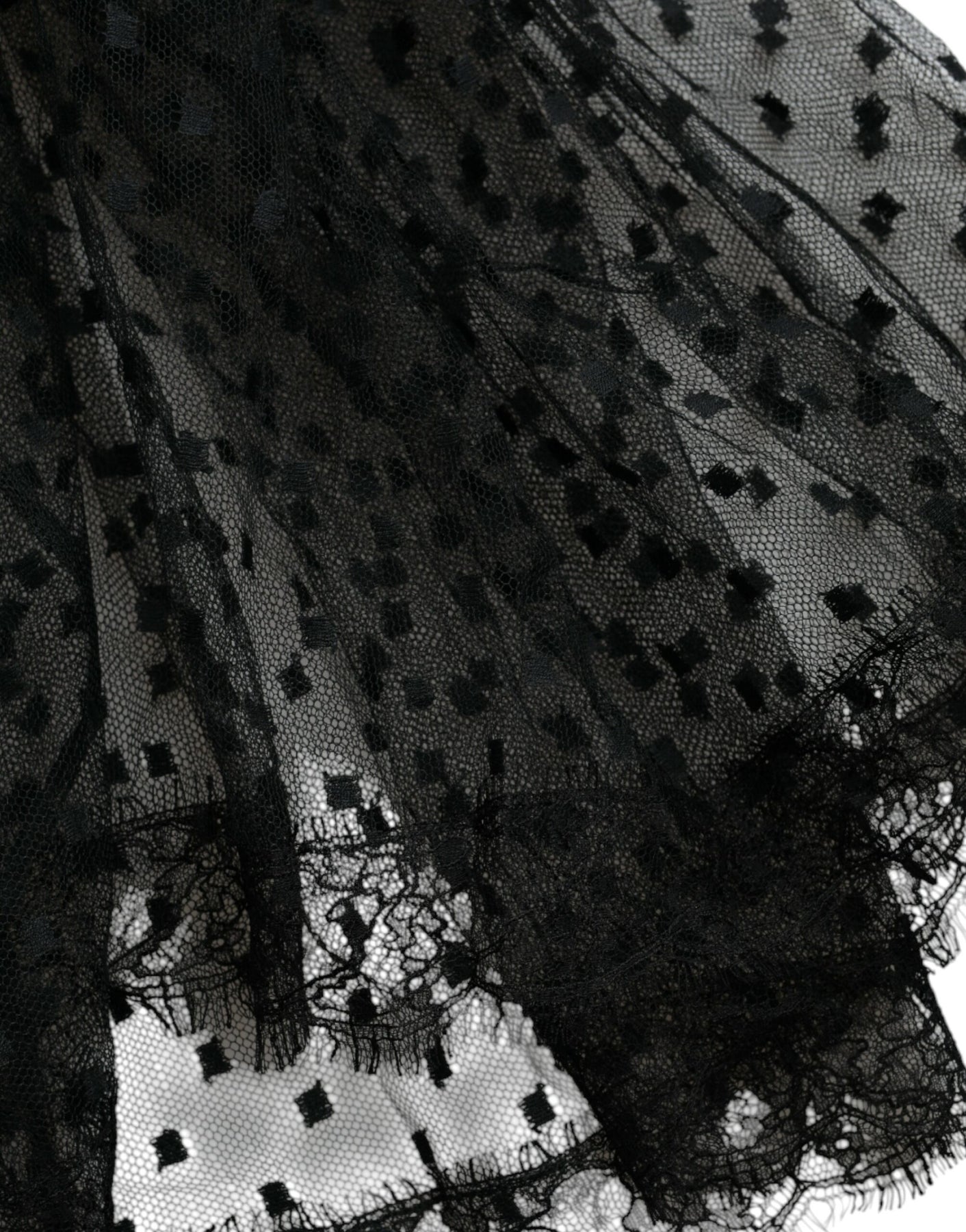 Jupe trapèze taille haute en nylon noir avec bordure en dentelle Dolce & Gabbana