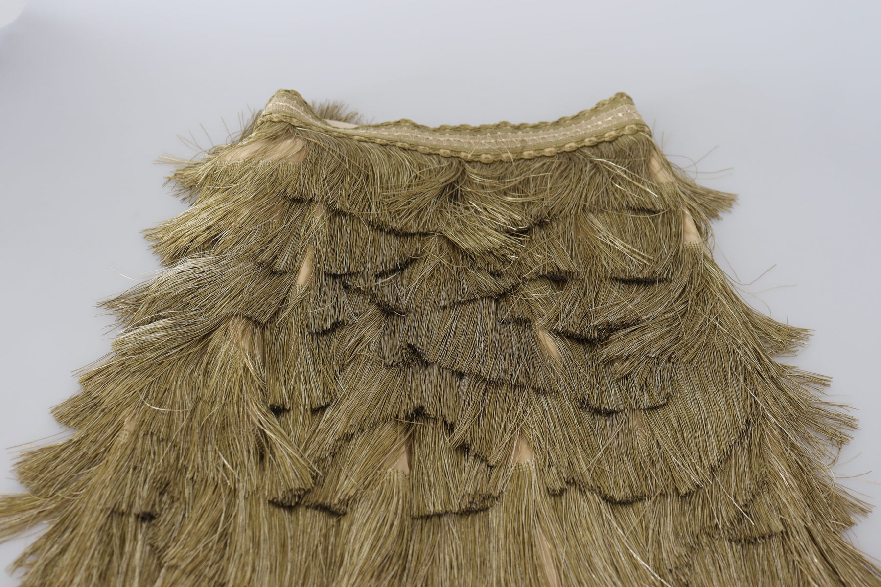 Jupe midi en soie à franges métallisées dorées Dolce & Gabbana