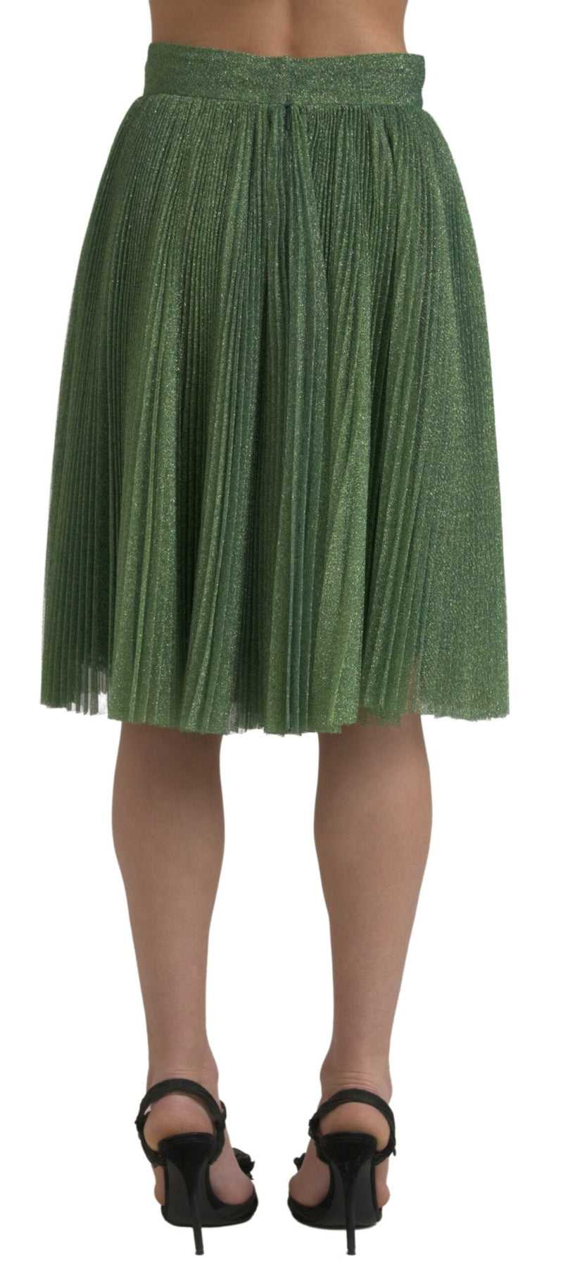 Jupe plissée taille haute trapèze vert métallisé Dolce & Gabbana