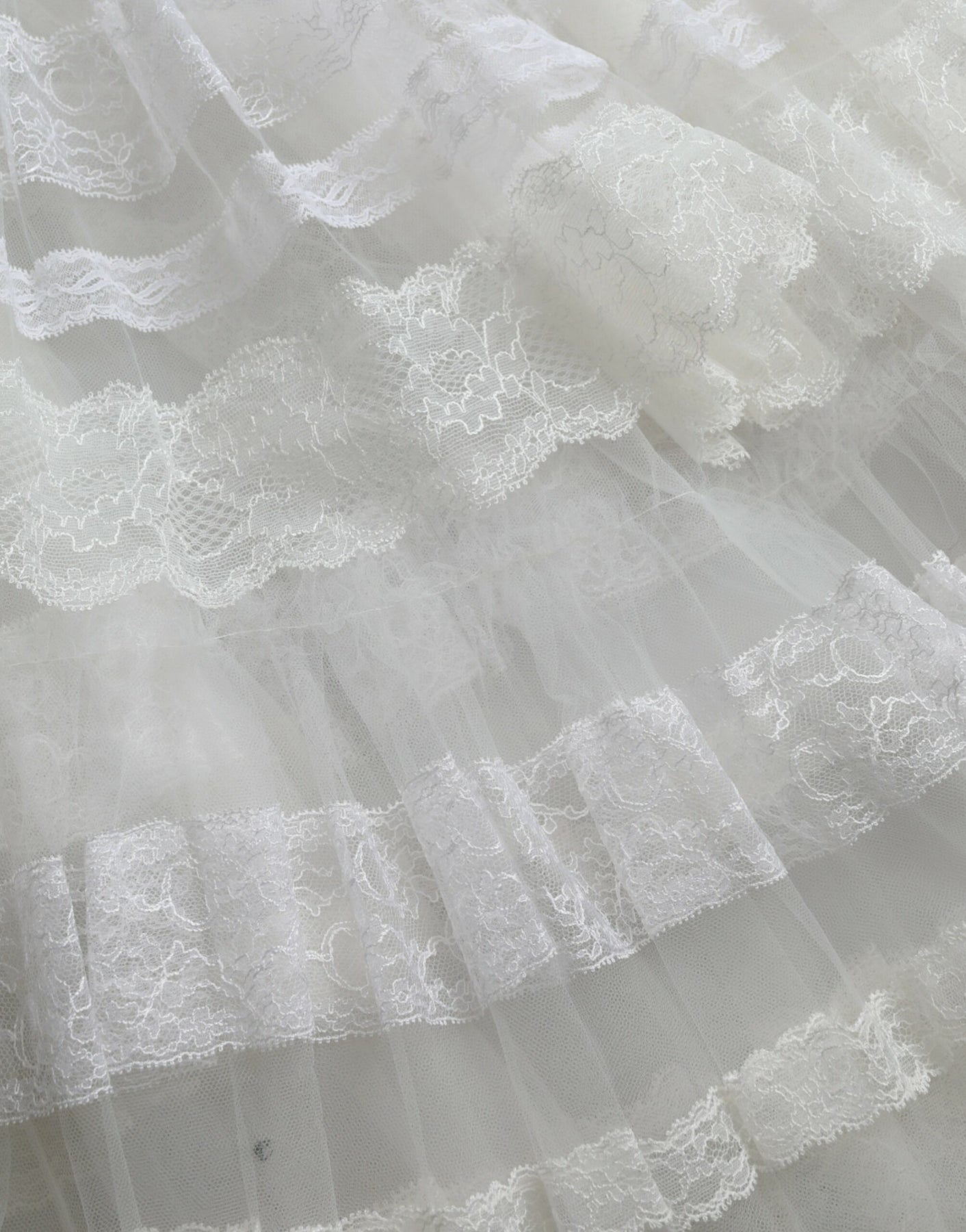Robe longue en nylon blanc transparent à volants et dentelle Dolce & Gabbana