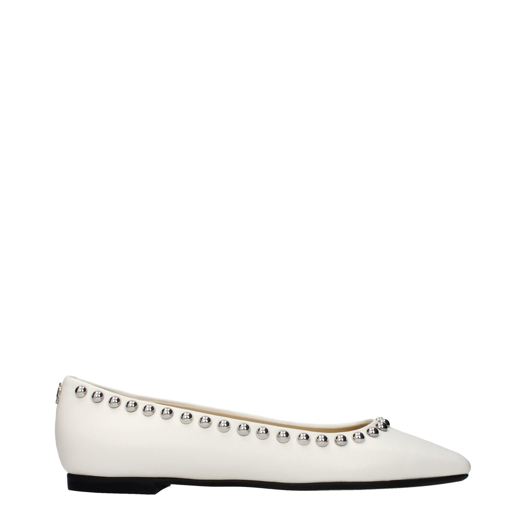 The product with MPN MIRELEFLATONDXMILK and code F86382 leather in white is a ballet flats designed by Jimmy Choo. It has features like studs.