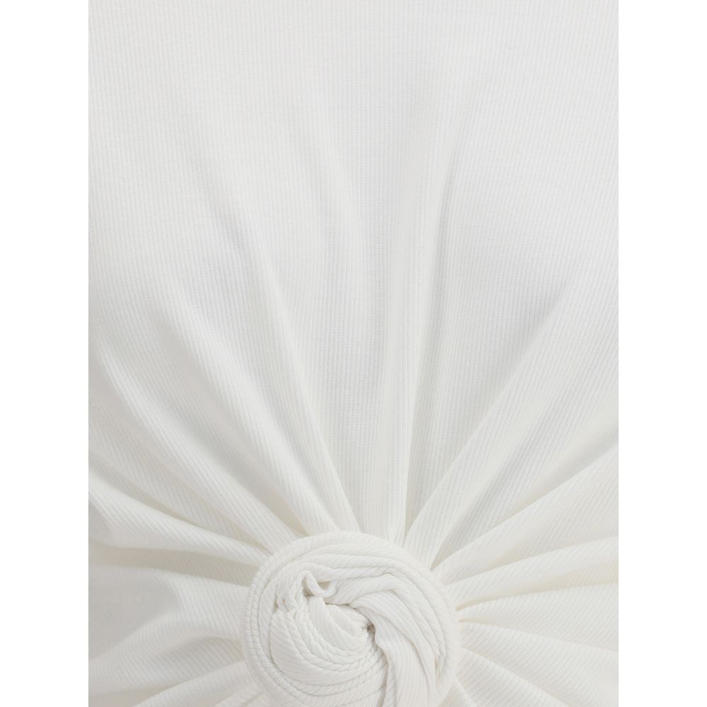Le t-shirt Magda Butrym est une pièce polyvalente et féminine, dotée d'un col ras du cou classique et d'un design côtelé qui sublime la silhouette. Le détail de la rose et le drapé sur le devant apportent une touche d'originalité et de douceur, idéale pour des looks décontractés et sophistiqués.