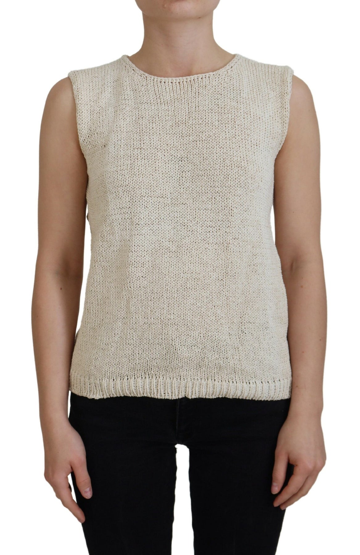 Débardeur sans manches à col rond en coton mélangé beige PINK MEMORIES