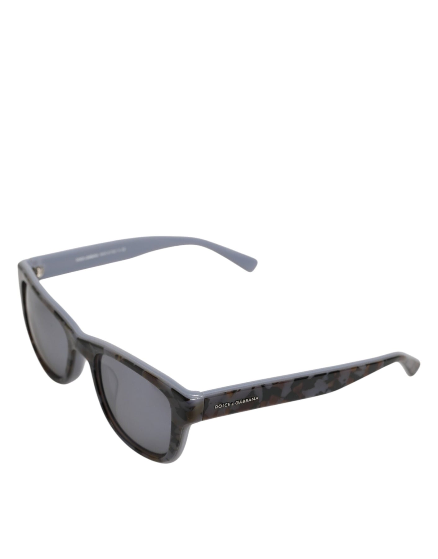 Gorgeous brand new, 100% Authentic Dolce & Gabbana sunglasses. These shades are a stylish take on the classic shape, featuring an unusual and modern color combination.The front frame showcases a unique Gray, Blue, and Black Tortoiseshell pattern. The arms transition to a sleek, solid Light Gray/Blue color, offering a contemporary contrast. They are crafted from polished acetate and fitted with dark gray lenses.