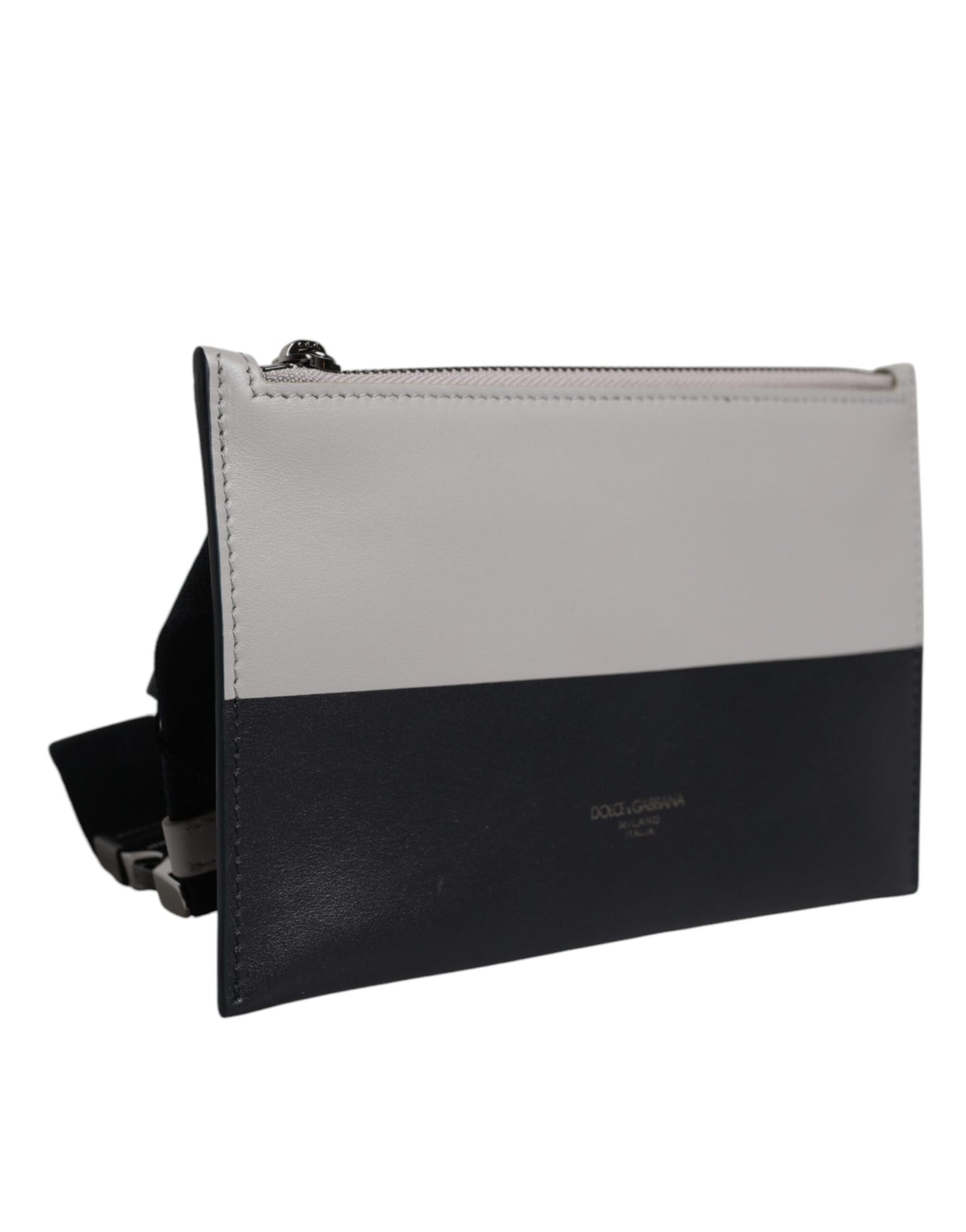 Dolce & Gabbana zwart-wit leren schoudertas met logoreliëf