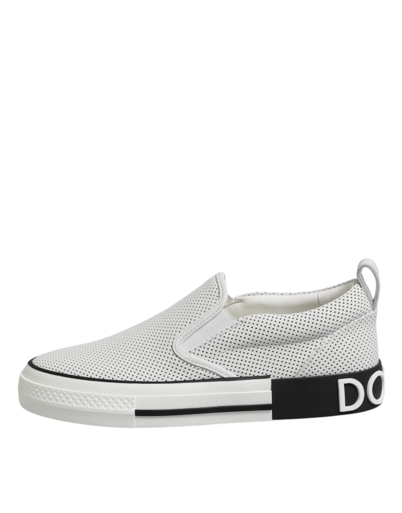 Dolce & Gabbana Witte Gestippelde Leren Slip-On Sneakers voor Heren