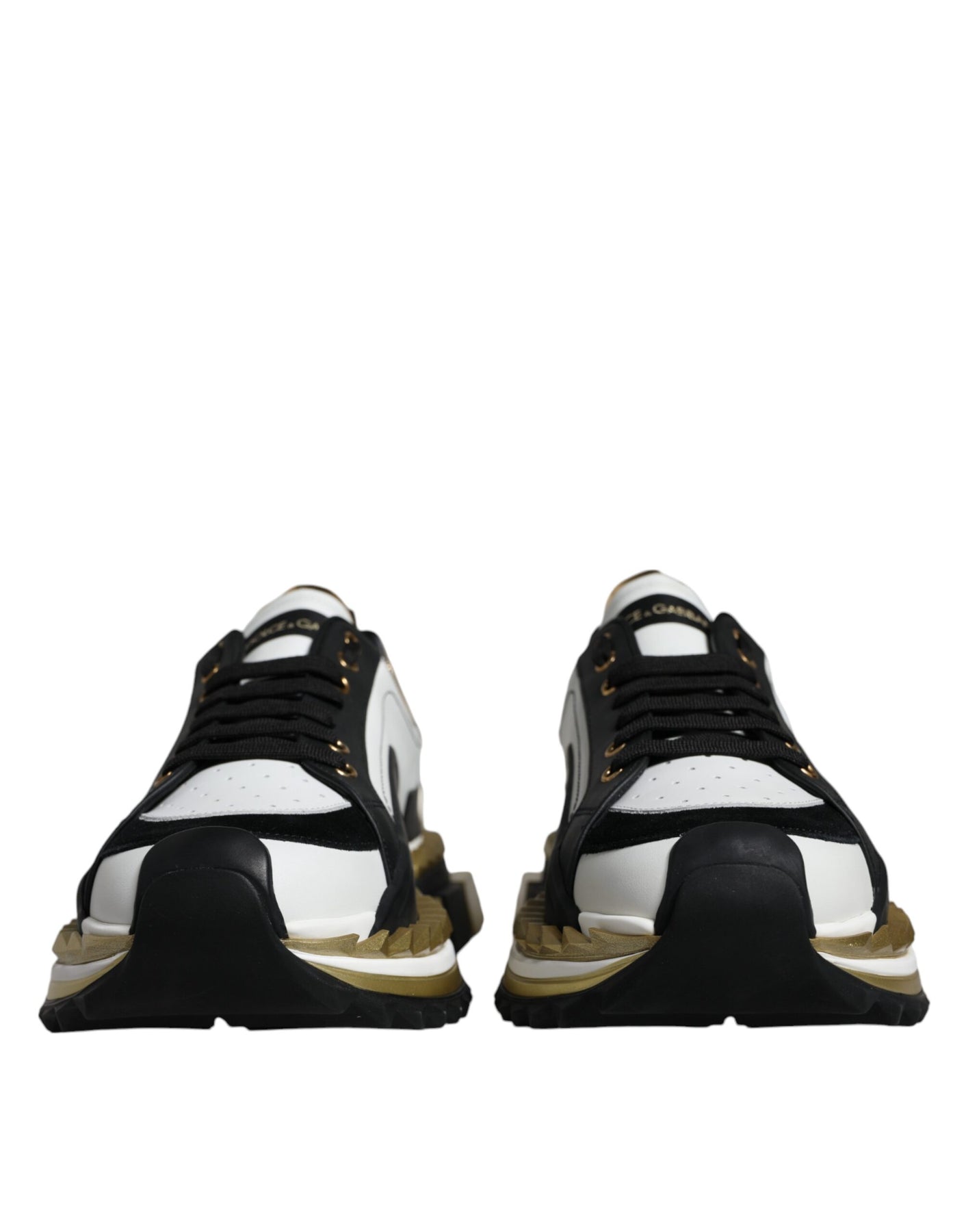 Dolce & Gabbana Wit Goud Zwart Leren SUPER KING Sneakers Schoenen