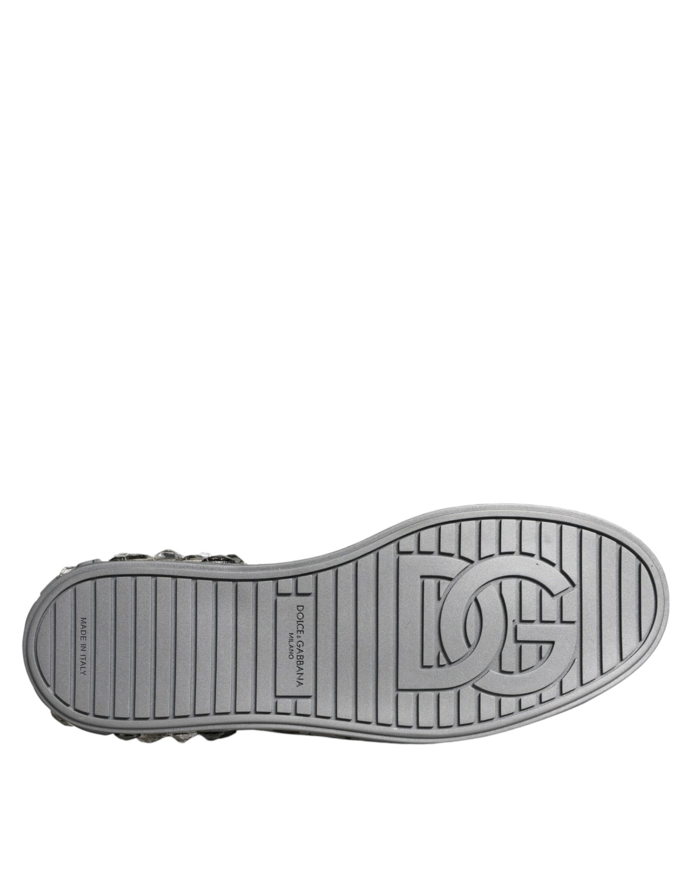 Dolce & Gabbana Wit Zilver Crystal Logo Portofino Sneakers Schoenen
