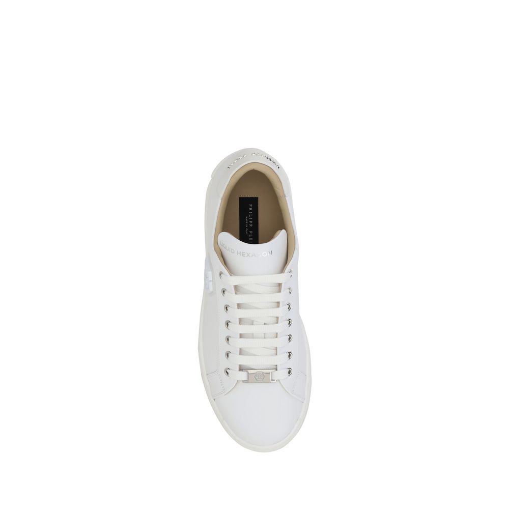 De sneakers van Philippe Plein combineren een gedurfd, modern design, perfect voor wie op zoek is naar een vleugje casual luxe. De vetersluiting zorgt voor een veilige en verstelbare pasvorm, terwijl de kenmerkende applicatie van het merk op de achterkant en het logo aan de zijkanten een onderscheidend en herkenbaar accent toevoegen. De platte zool biedt comfort en stabiliteit, terwijl de ronde neus een strakke en veelzijdige look geeft. Deze sneakers zijn ideaal om streetwearlooks af te maken met een vleugje exclusieve stijl.