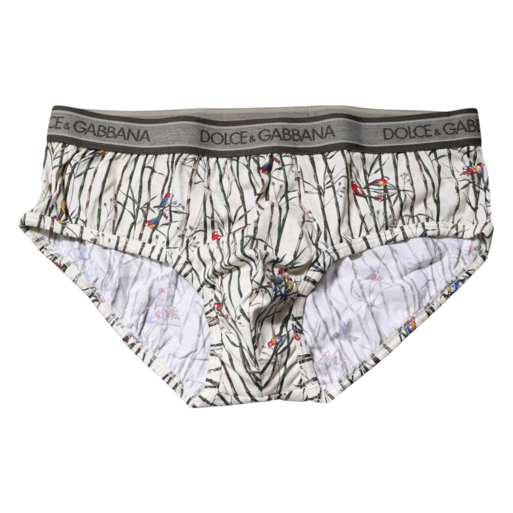 Dolce & Gabbana Ivory Bird Print Katoenen Regular Slip Ondergoed