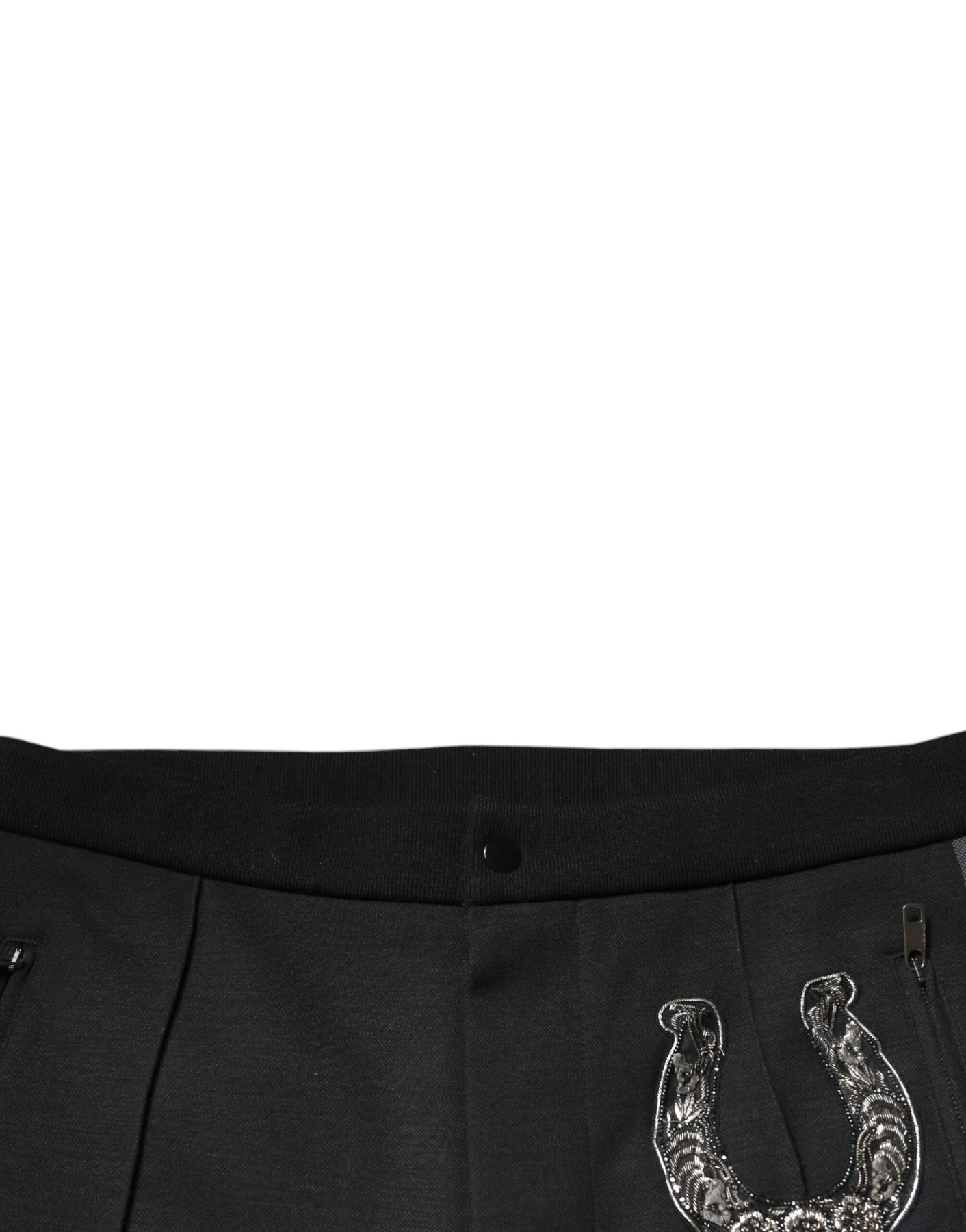 Dolce & Gabbana Zwarte Slim Fit Broek met Hoefijzerversiering van Wol