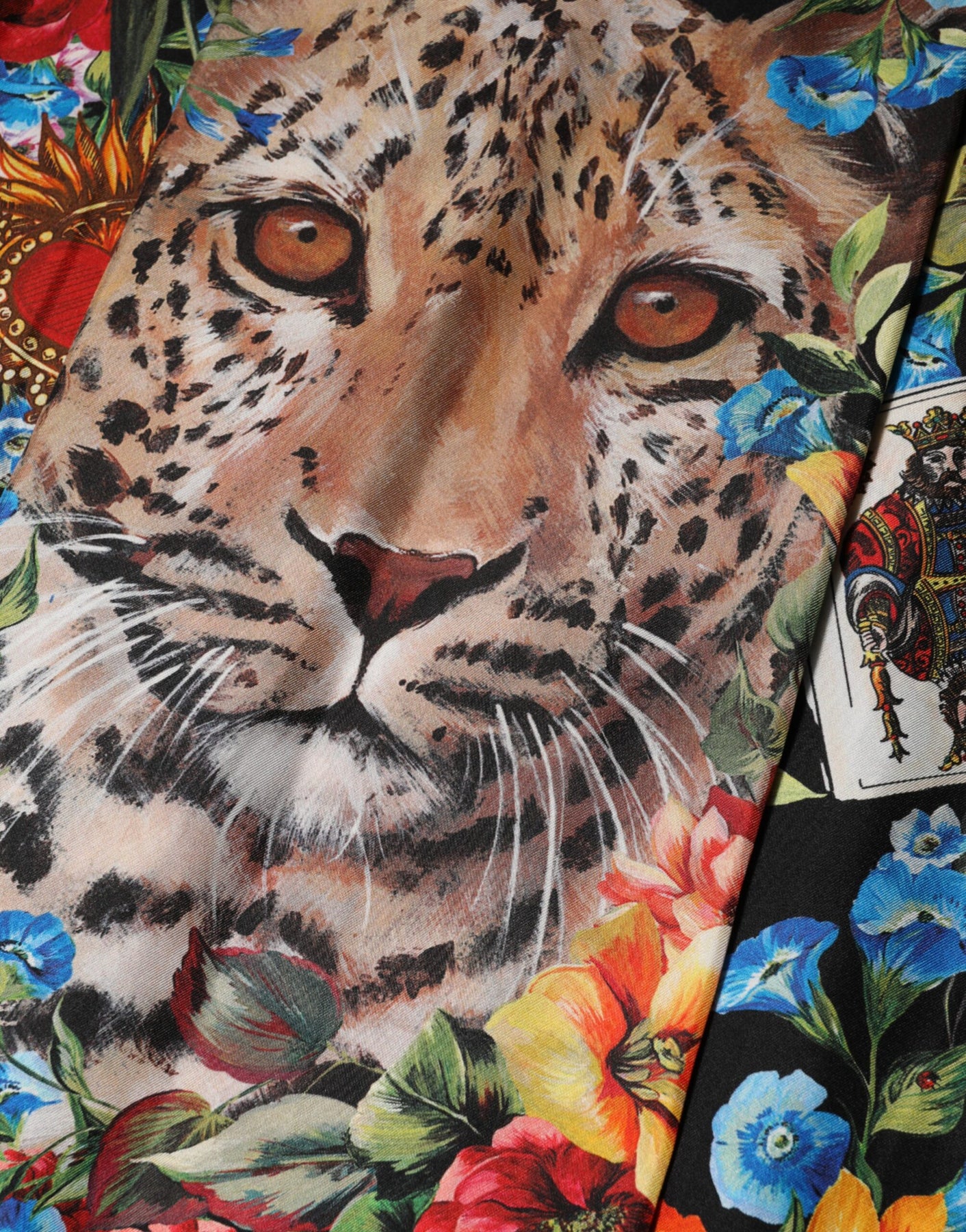 Dolce & Gabbana Black Leopard Floral Silk Sheath Midi Dress