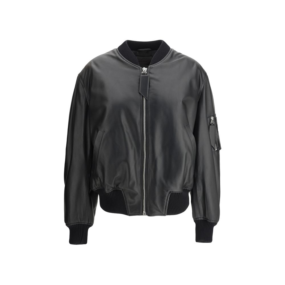 Leren Anja Bomberjack van The Attico, geribbelde kraag, ritssluiting aan de voorkant, wijde mouwen, opgestikte zak met rits op de linkermouw, geribbelde manchetten, geribbelde zoom, oversized pasvorm.