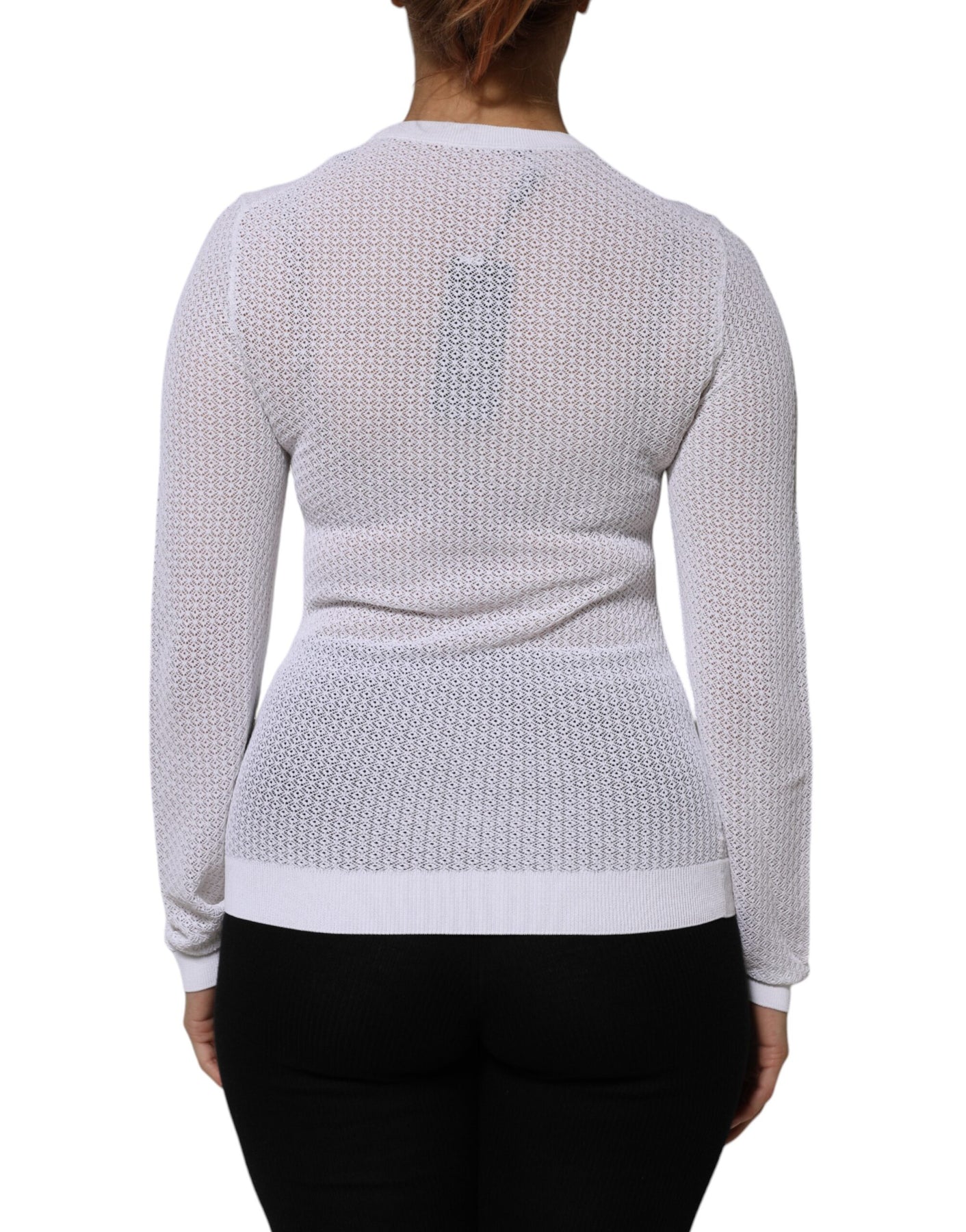 Dolce & Gabbana White Round Neck Long Sleeves Pullover Top